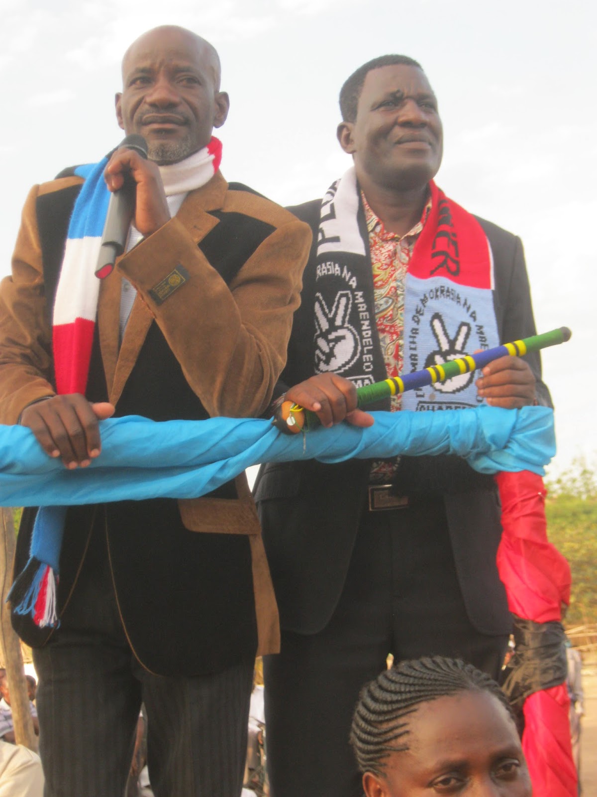 Mtia nia nafasi ya Ubunge katika jimbo la Bariadi Magharibi Seni Silanga kupitia Chadema, akiongea na mamia ya wananchi katika kata ya Dutwa wakati wa kutambulishwa kwa madiwani 10 waliojiunga na chama hicho.